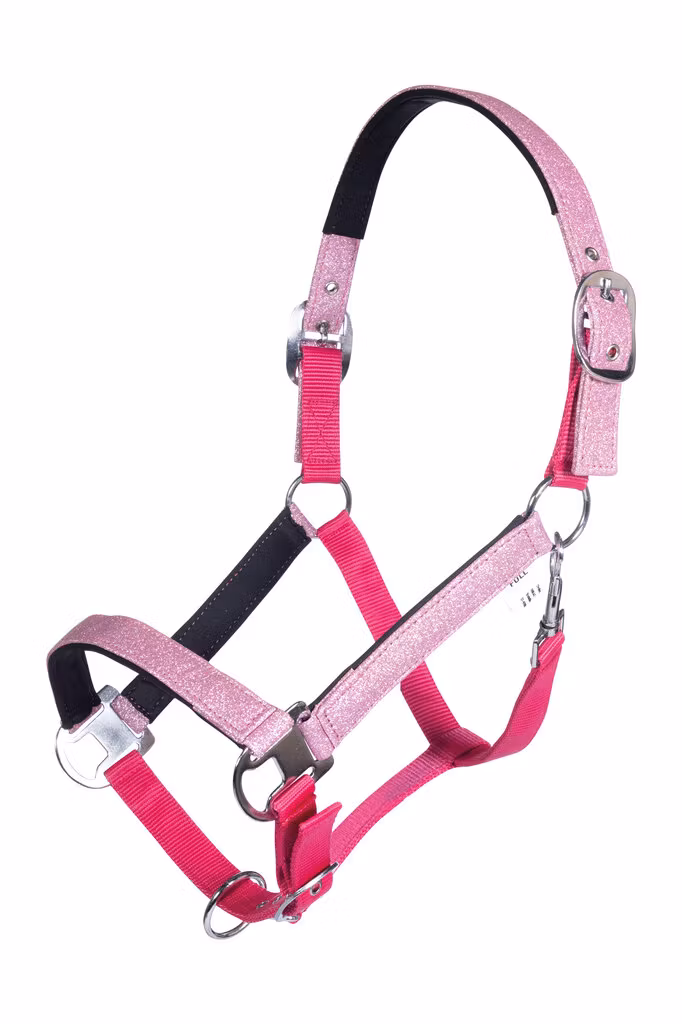 HKM Grimma Anni 189:- STORLEK Shetland Ponny Cob Full I lager Lägg i korgen Lagersaldo: Information Glittrig nylongrimma i härlig rosa färg med neoprenfodring i nacke ,nos och sidostycken för att minimera risken för skav.