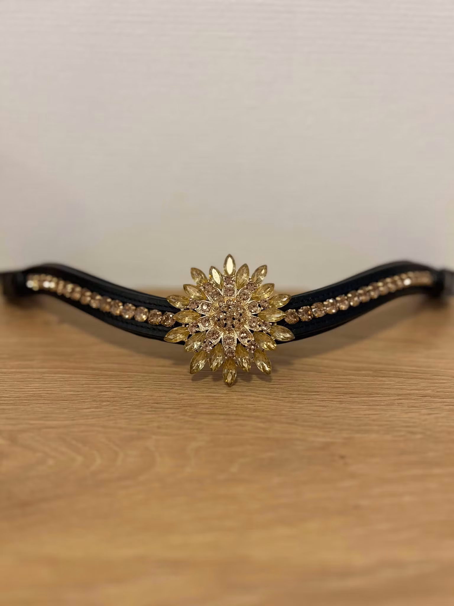 Furion Equestrian Pannband ZOLA SVART PONNY 649:- I lager Lägg i korgen Lagersaldo: 1 Information Handsytt pannband med smycket ZOLA med guldiga stenarU-svängt med snabbknäppeSVART i storlek PONNY